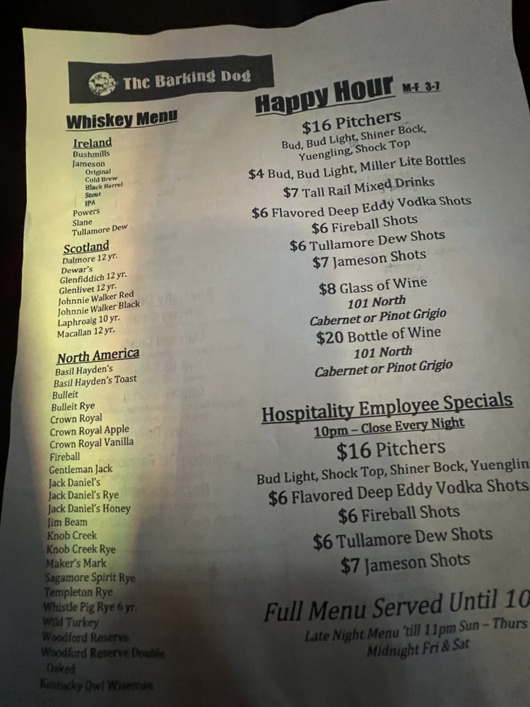 The Barking Dog Menu (Update 2025)