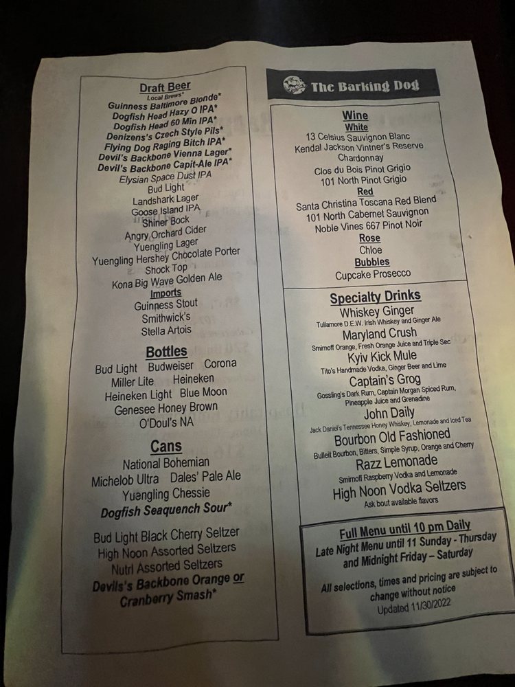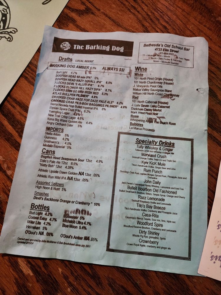 Welcome to The Barking Dog, a spirited gastropub nestled at 4723 Elm St, Bethesda, MD. Renowned as a lively venue for sports enthusiasts, it doubles as a neighborhood hangout, offering a diverse menu that marries classic bar fare with innovative twists.